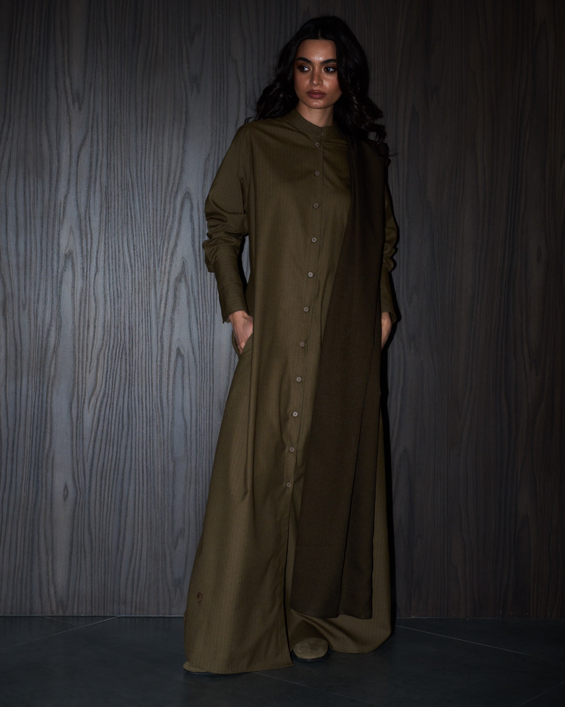 Light wool striped dishdasha, long sleeves with cashmere blend scarf