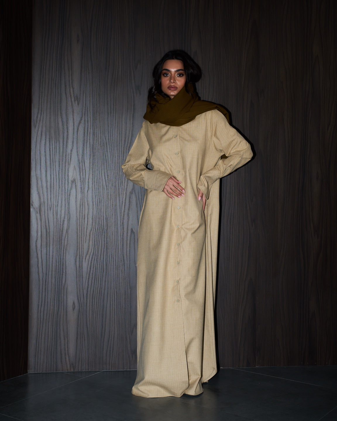 Pinstriped wool fabric Dishdasha Dress with detached Scarf
