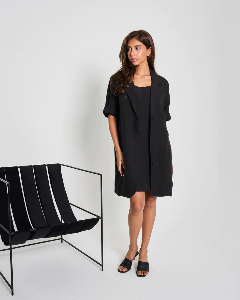 Linen Two piece set Dress Length: 35" inch Romper 35" inch Jacket Length: 36" inch S/M bust size: 38"...