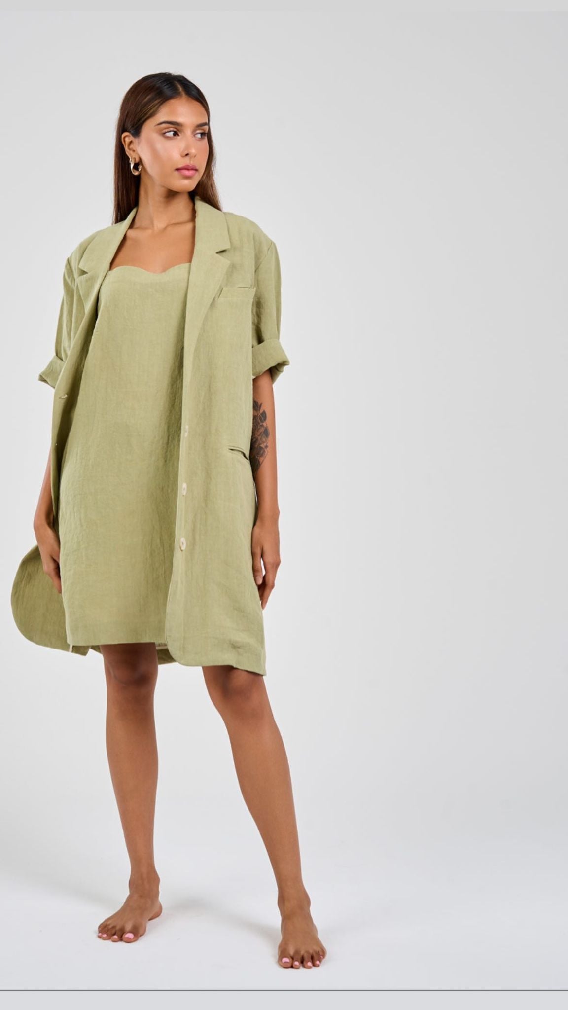 Linen Two piece set Dress Length: 35" inch Romper 35" inch Jacket Length: 36" inch S/M bust size: 38"...